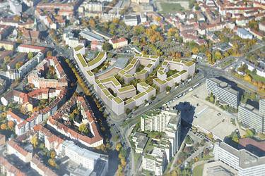 Bildquelle(n): Bilder: Darstellung des zukünftigen Luitpoldviertels in Nürnberg. Visualisierung: KIB Gruppe