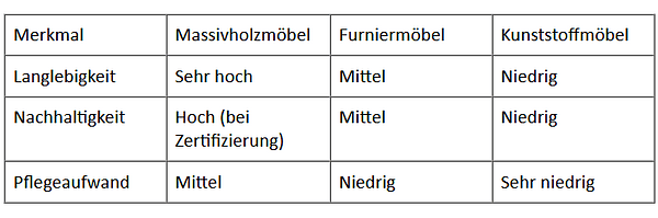 Eine kurze Übersicht über die Vorteile von Massivholzmöbeln im Vergleich zu anderen Materialien verdeutlicht deren Wert:
