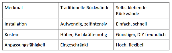 Der Markt für Inneneinrichtung ist ein wichtiger Wirtschaftszweig, der ständigem Wandel unterliegt. Selbstklebende Rückwände sind ein Beispiel dafür, wie Innovationen den Markt beeinflussen und neue Trends setzen können. Ihre Kosteneffizienz und einfache Handhabung machen sie zu einer attraktiven Option in Zeiten, in denen viele Menschen nach preiswerten und dennoch stilvollen Lösungen suchen.